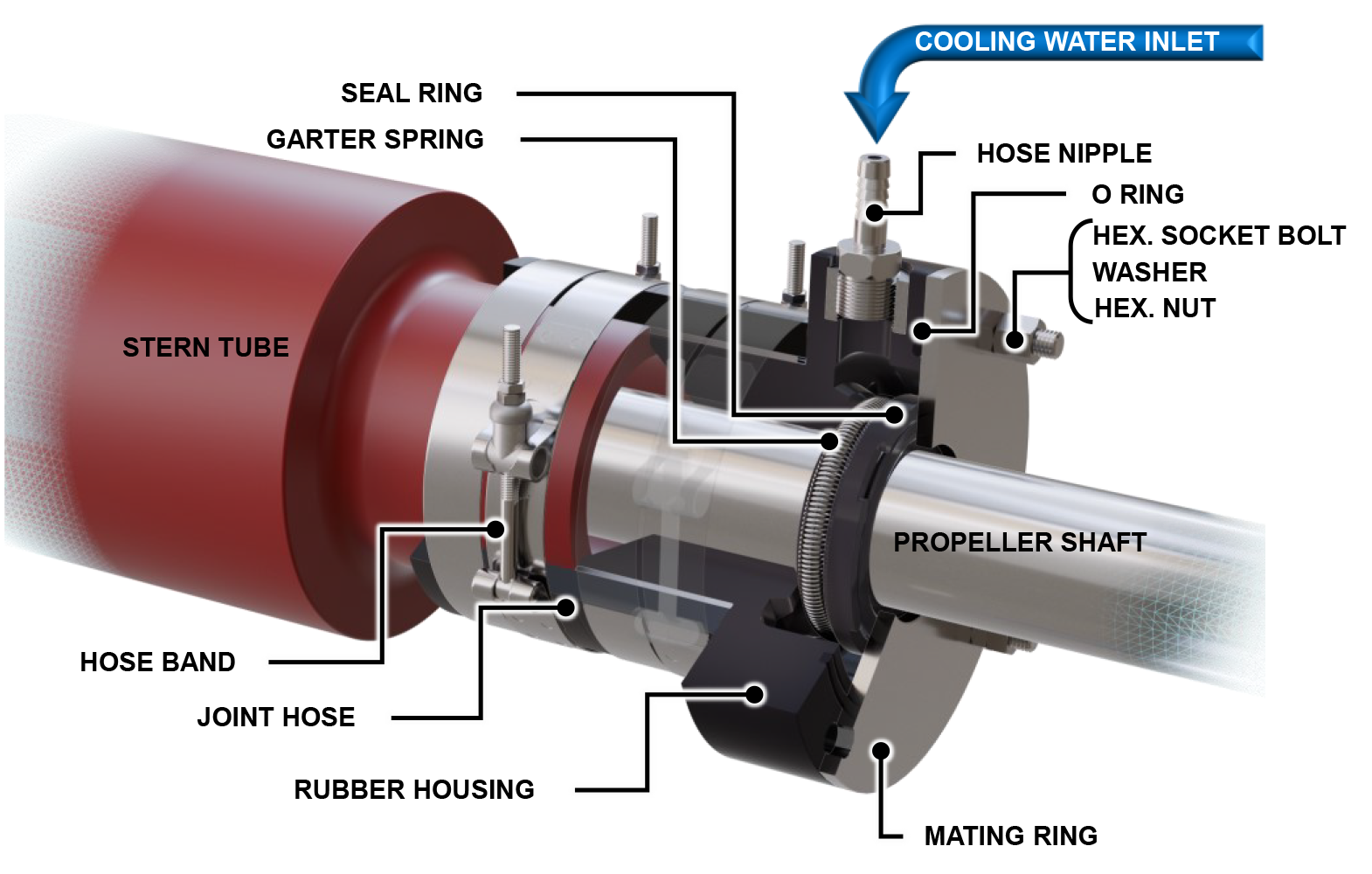 The Marine Ace Seal (MAS) is our newly developed water-lubricated stern seal for small vessels with direct drive systems.